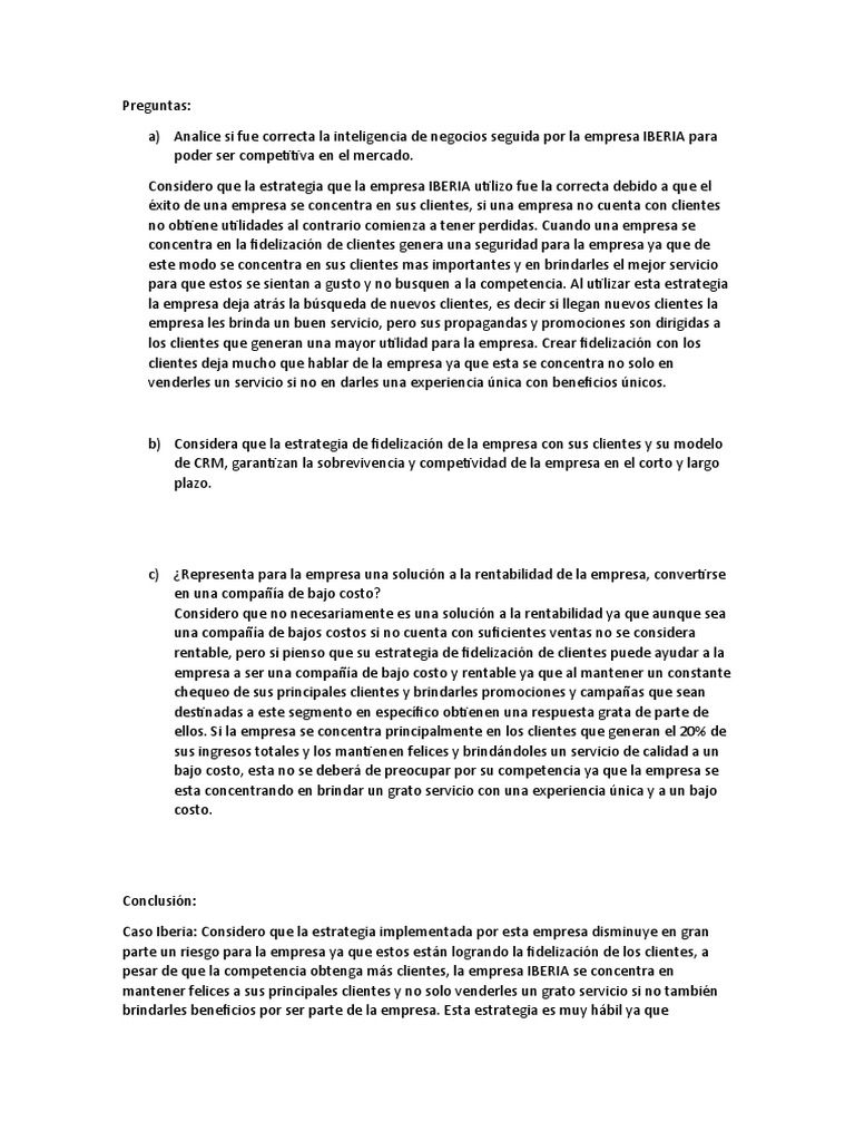 a) Analice si fue correcta la inteligencia de negocios seguida por la empresa IBERIA para
