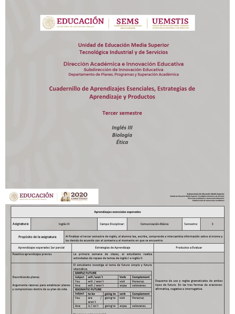 Asignatura: Inglés III Campo Disciplinar: Comunicación-Básico Semestre: 3