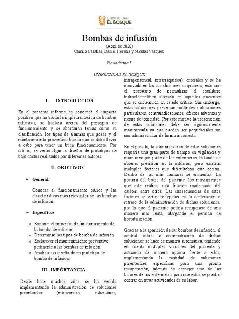 bomba de infusión son las siguientes: perfusión del líquido. Por lo general se compone de