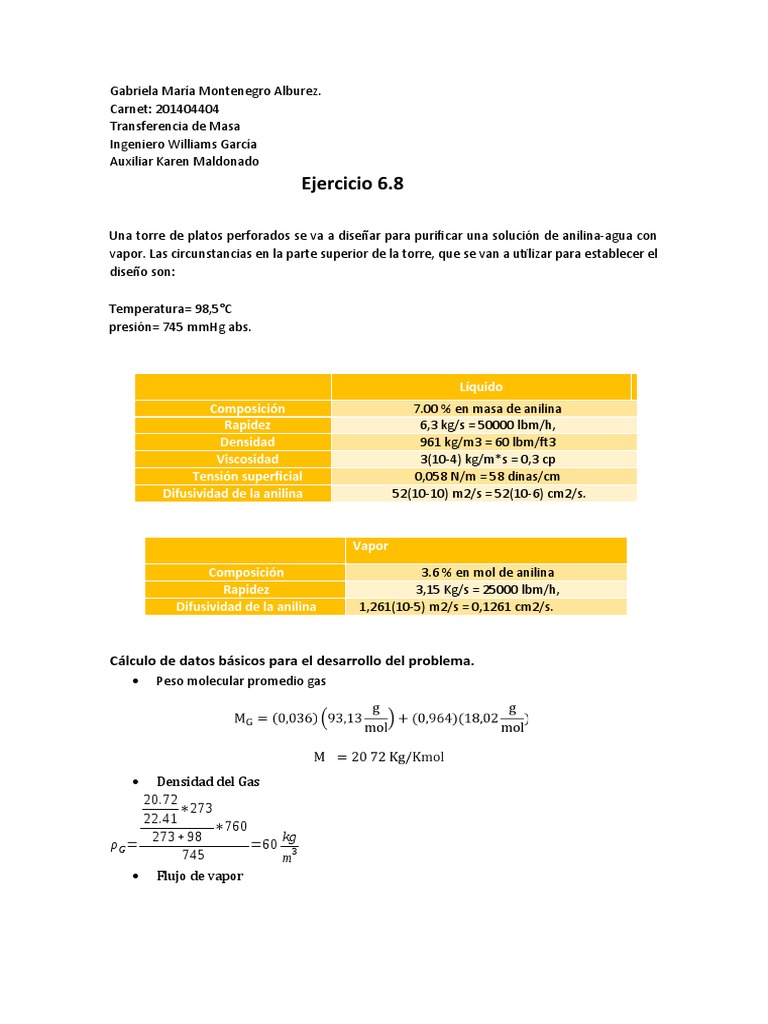 Primero debemos usar la ecuación 6.37 del Treybal.