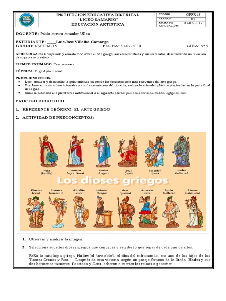 2. Selecciona aquellos dioses griegos que conozcas y escribe lo que sepas de cada uno de ellos.