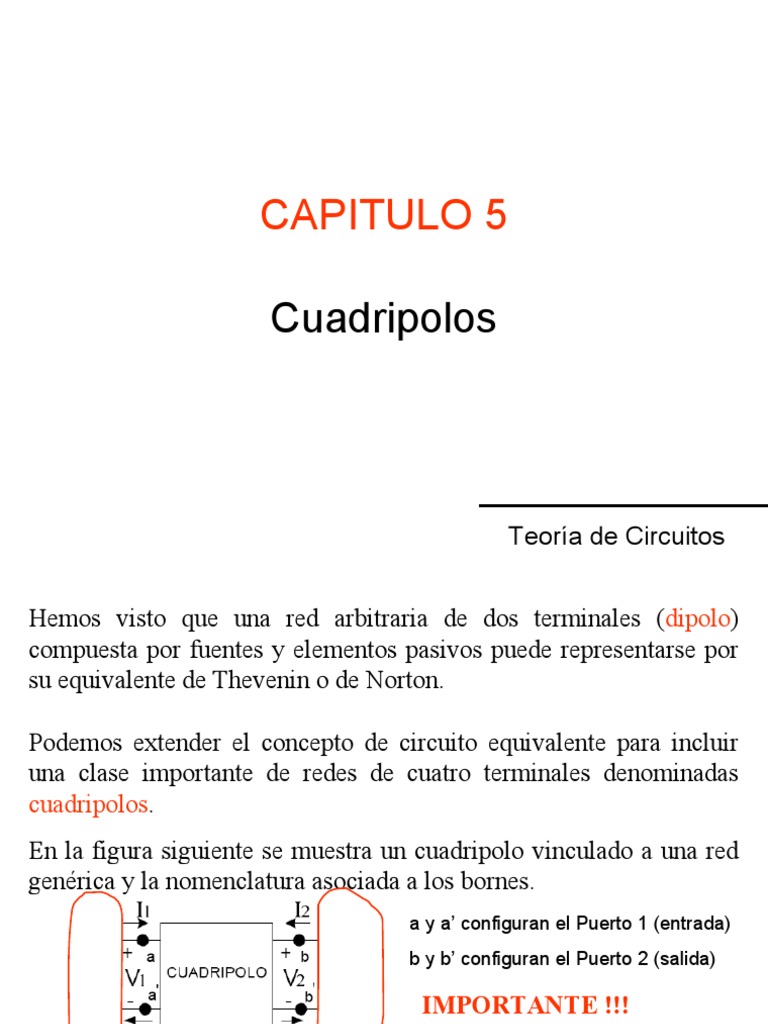 Se denomina cuadripolo a cualquier red de cuatro terminales