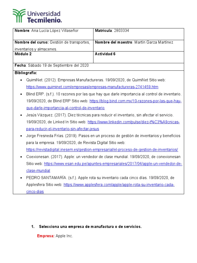 1. Selecciona una empresa de manufactura o de servicios.