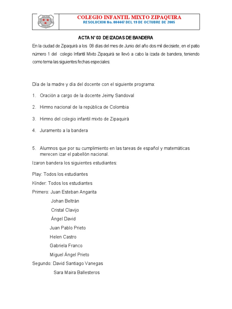 ACTA N° 03 DE IZADAS DE BANDERA