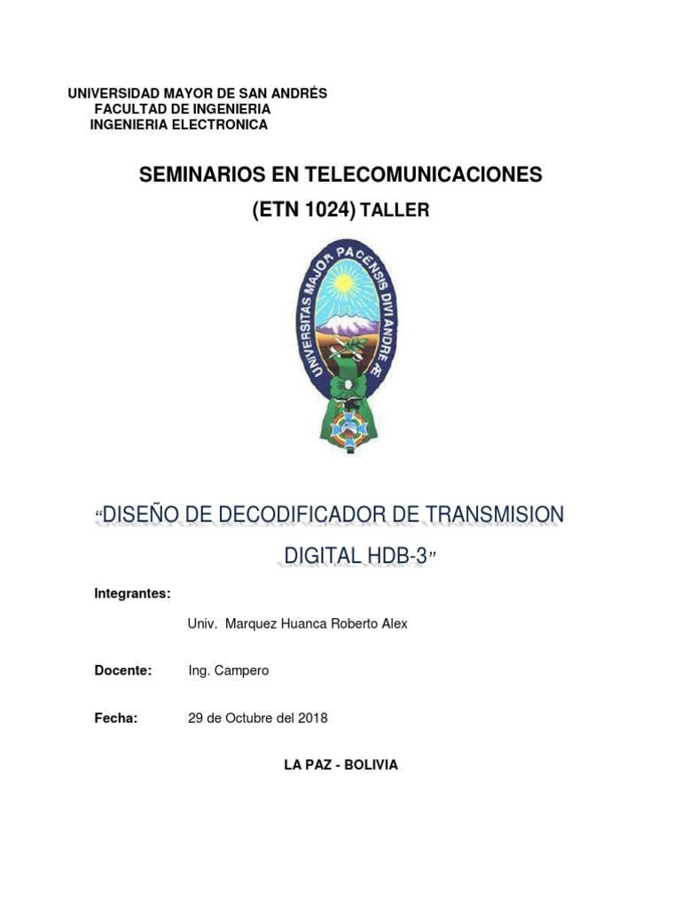 “DISEÑO DE DECODIFICADOR DE TRANSMISION