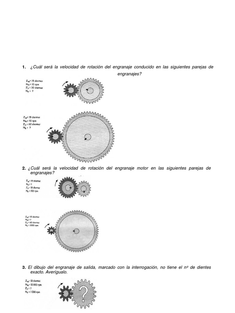 2. ¿Cuál será la velocidad de rotación del engranaje motor en las siguientes parejas de