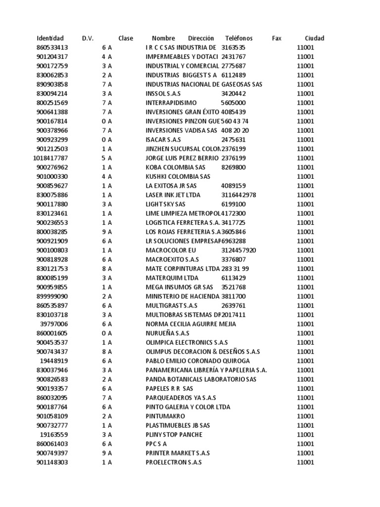 Clase Nombre Dirección Teléfonos Fax Ciudad