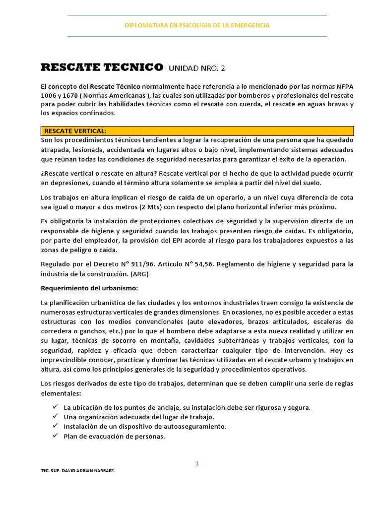 El concepto del Rescate Técnico normalmente hace referencia a lo mencionado por las normas NFPA