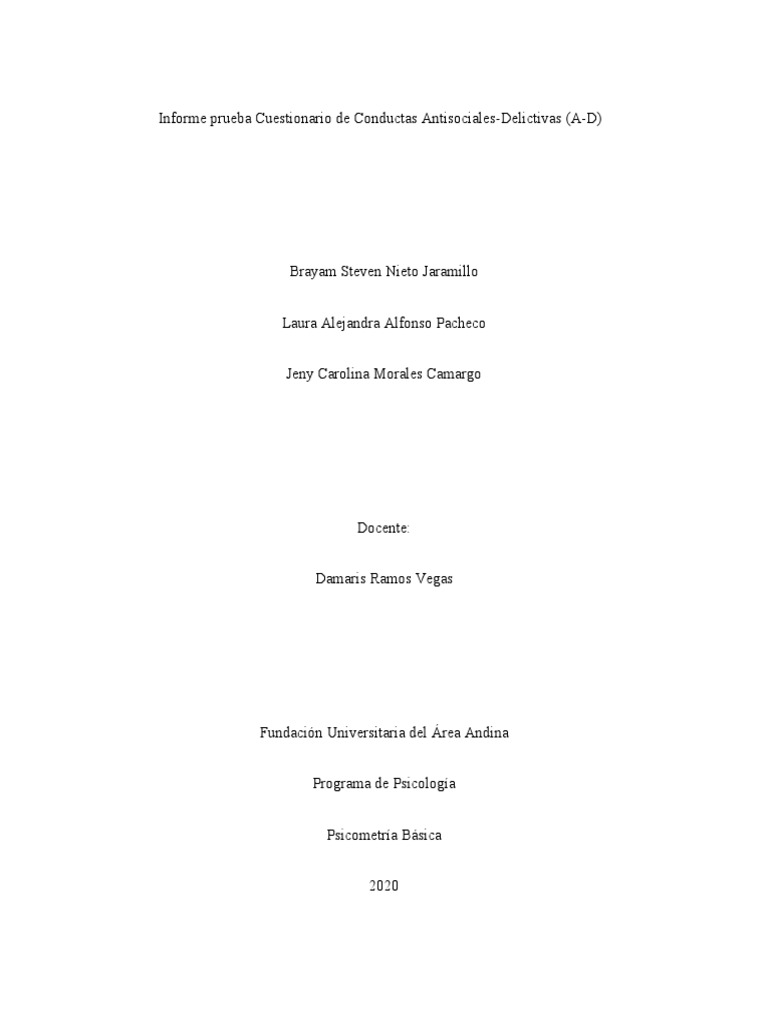 Informe prueba Cuestionario de Conductas Antisociales-Delictivas (A-D)