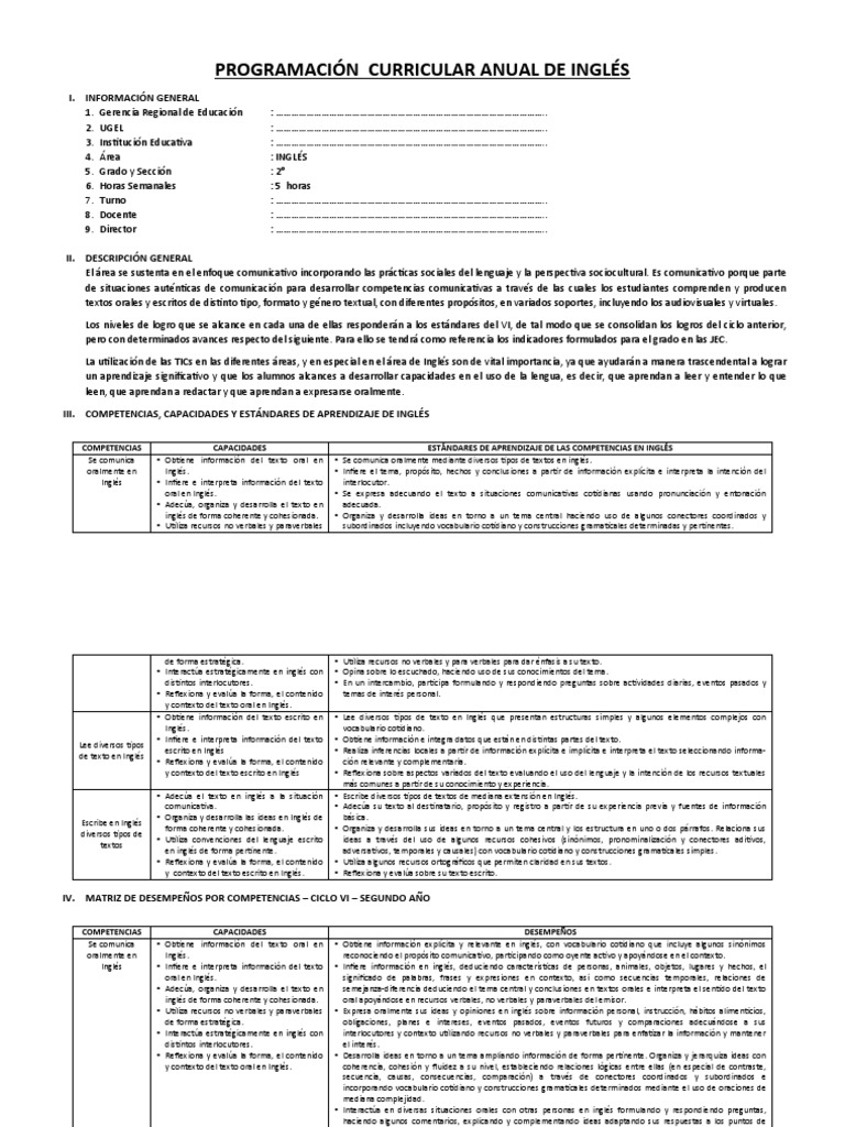 Programación Anual de Inglés 2° Grado