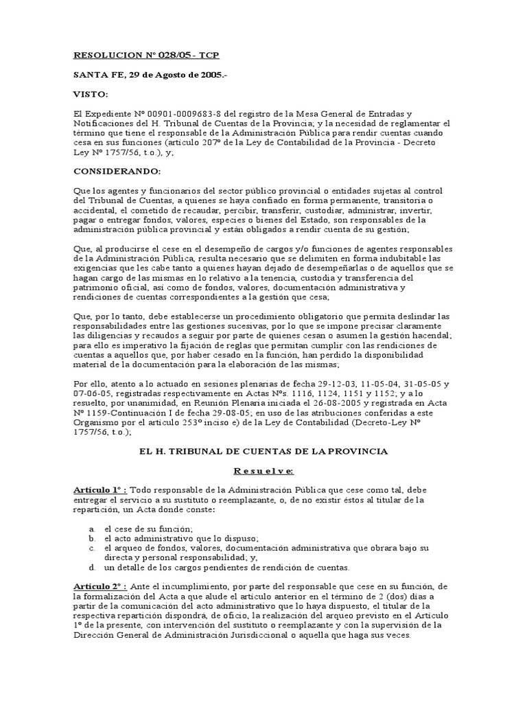Nº 1159-Continuación I de fecha 29-08-05; en uso de las atribuciones conferidas a este