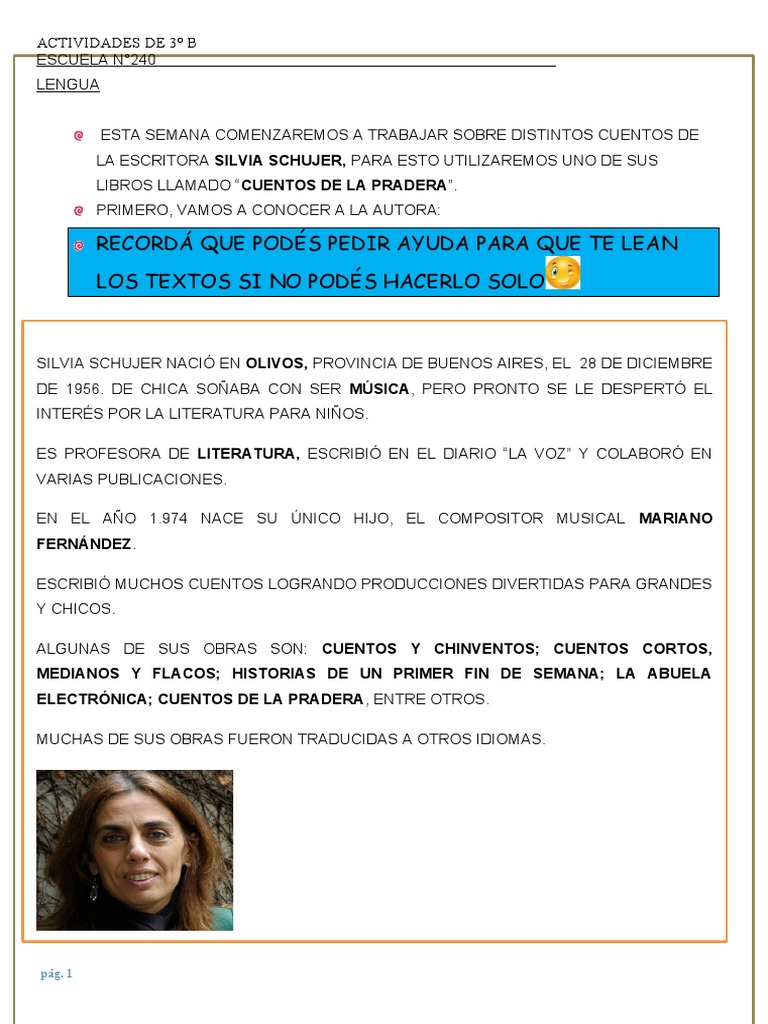 AUTORA SILVIA SCHUJER” CON EL QUE VAMOS A COMENZAR A TRABAJAR ESTA