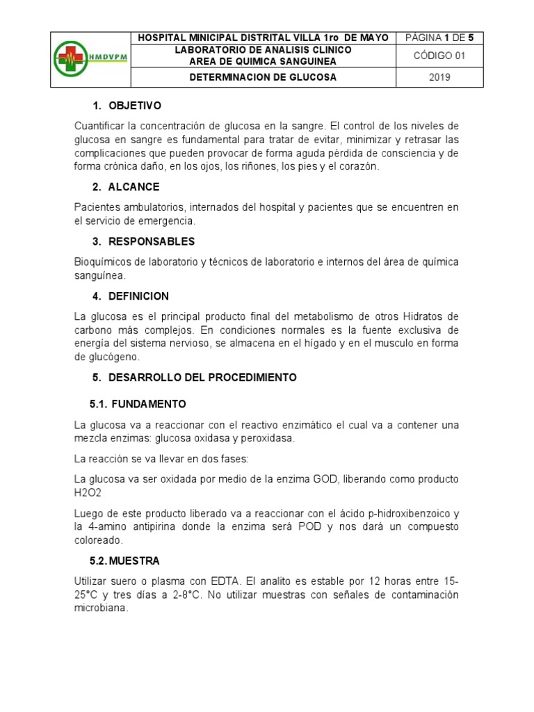DETERMINACION DE GLUCOSA 2019