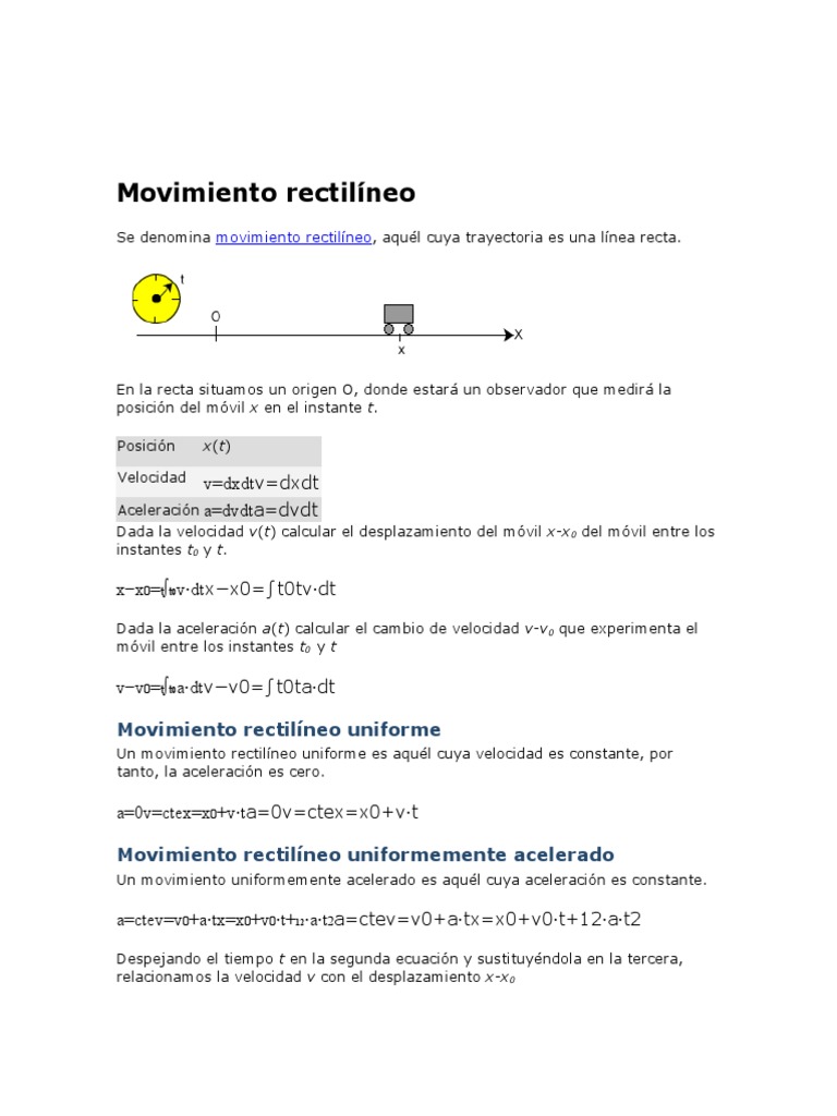 Se denomina movimiento rectilíneo, aquél cuya trayectoria es una línea recta.