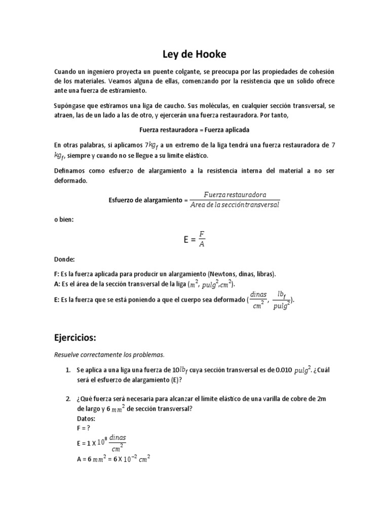 1. Se aplica a una liga una fuerza de 10lb f cuya sección transversal es de 0.010 pulg 2. ¿Cuál