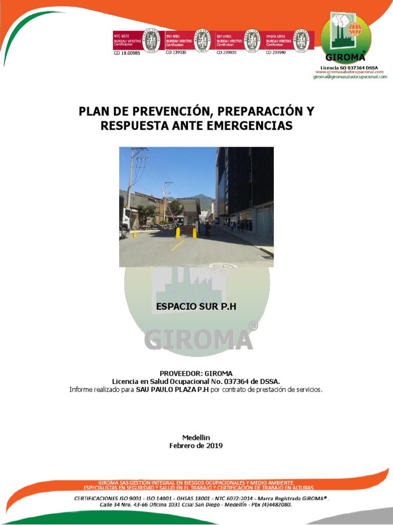 que ESPACIO SUR P.H, ha estructurado el plan de prevención, preparación y respuesta ante