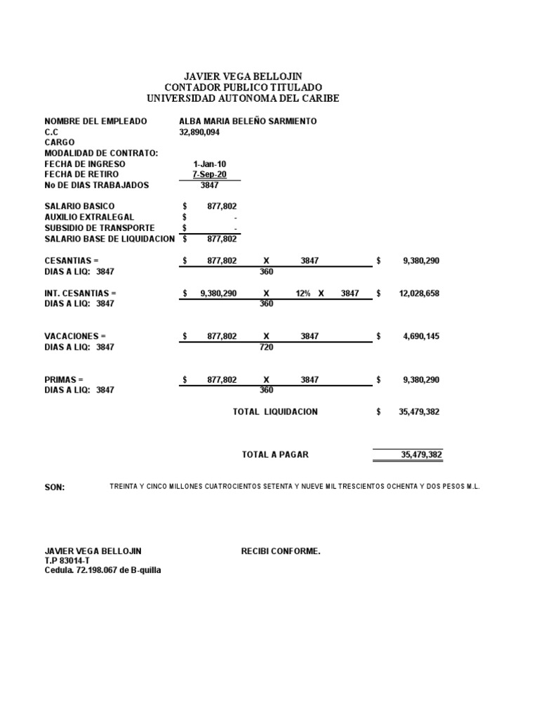 CESANTIAS = $ 877,802 X 3847 $ 9,380,290