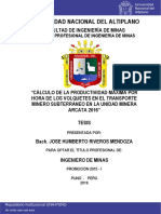 en la Mina Maribel de Oro A-Ananea, Universidad Nacional del Altiplano-Puno,