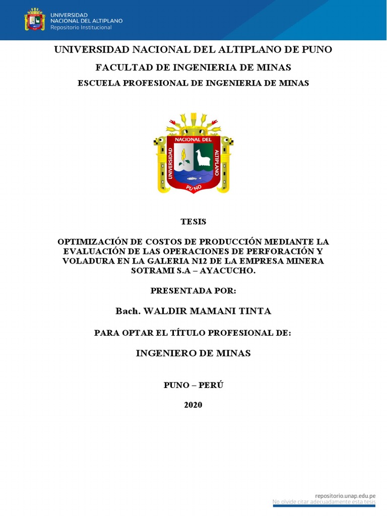 Ayamamani, C. (2016). Diseño de perforación y voladura y su incidencia en los costos