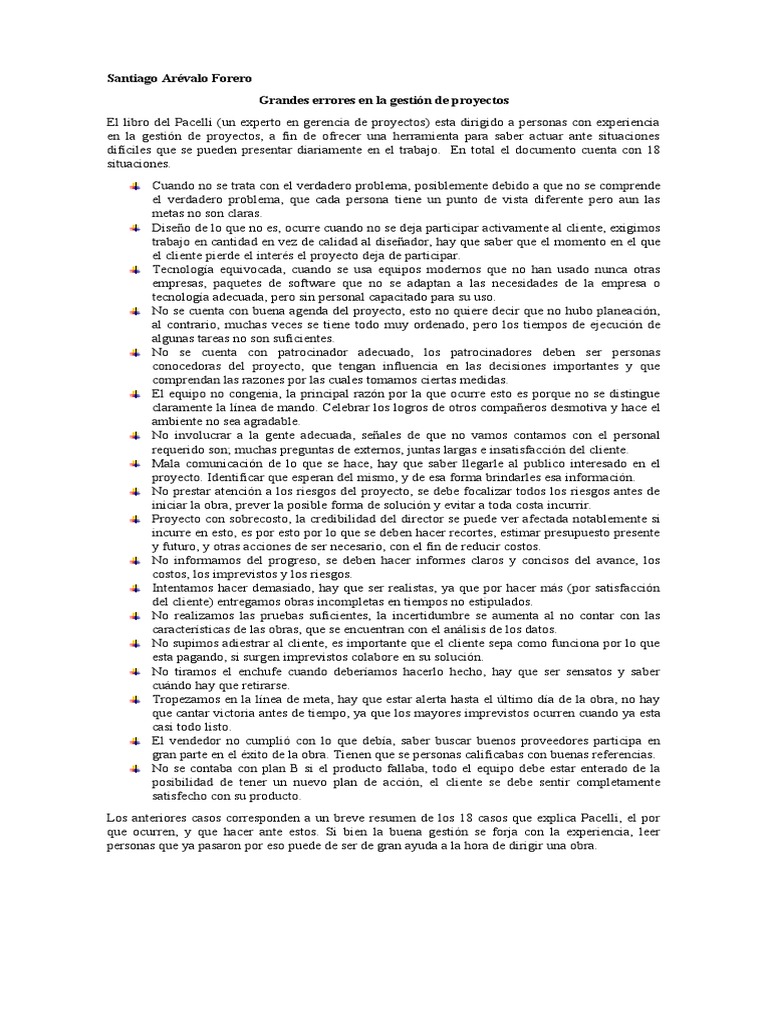 No prestar atención a los riesgos del proyecto, se debe focalizar todos los riesgos antes de