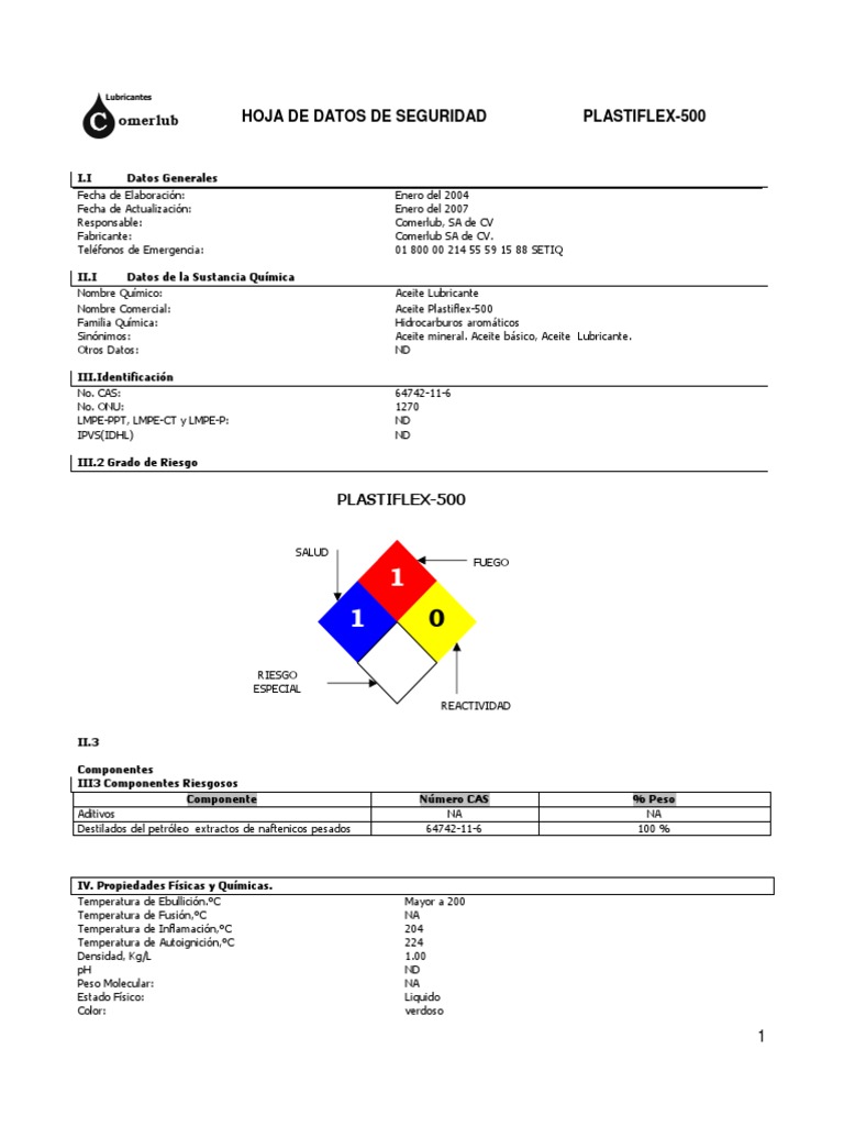 omerlub HOJA DE DATOS DE SEGURIDAD PLASTIFLEX-500