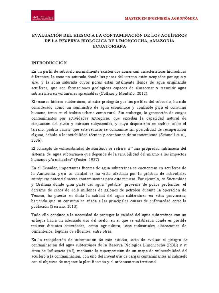 contaminación del agua subterránea de la Reserva Biológica Limoncocha (RBL) y su