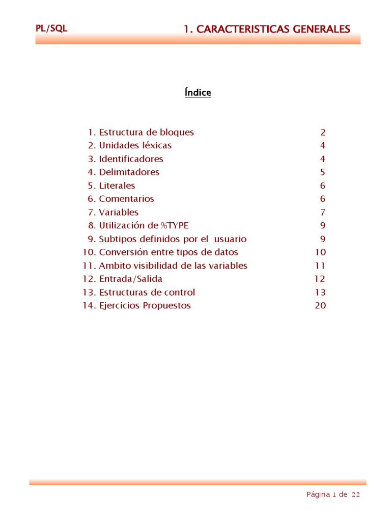 PL/SQL 1. CARACTERISTICAS GENERALES