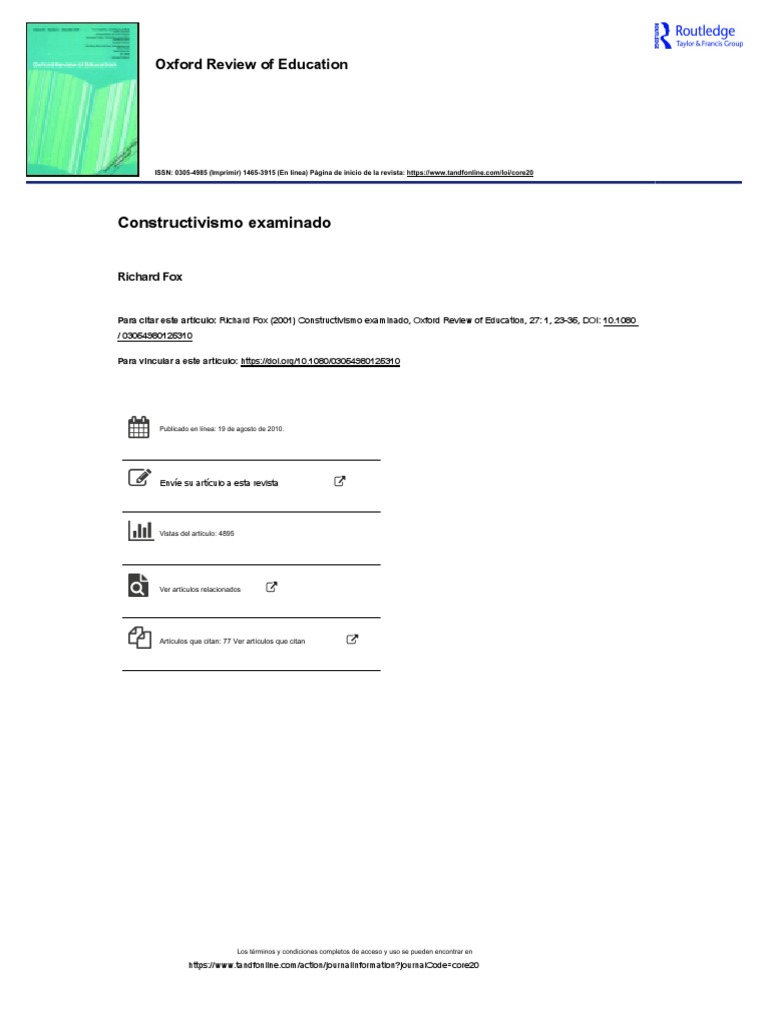 Para citar este artículo: Richard Fox (2001) Constructivismo examinado, Oxford Review of Education, 27: 1, 23-35, DOI: 10.1080