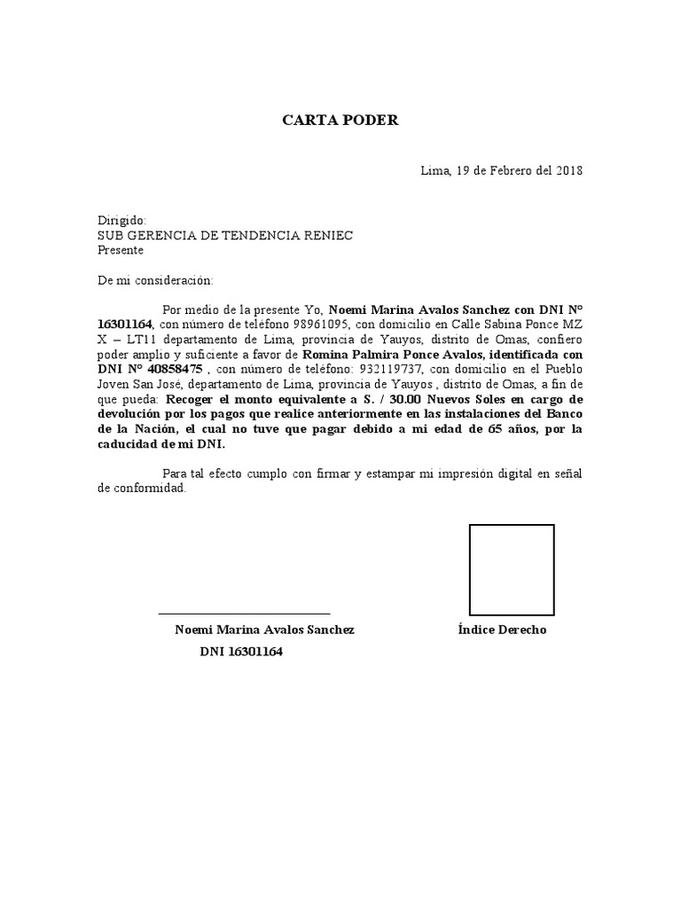 Por medio de la presente Yo, Noemi Marina Avalos Sanchez con DNI N°