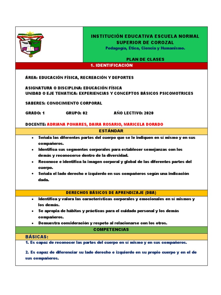 Identificó el esquema corporal (identifica sus segmentos corporales) y la dinámica