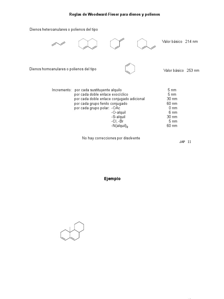 Corrección por disolventes: H2O -8 nm; Metanol/etanol 0; éter +7 nm; hexano/ciclohexano +11 nm