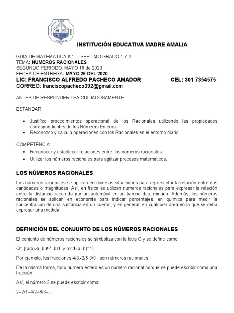 GUÍA DE MATEMÁTICA # 1 – SEPTIMO GRADO 1 Y 2