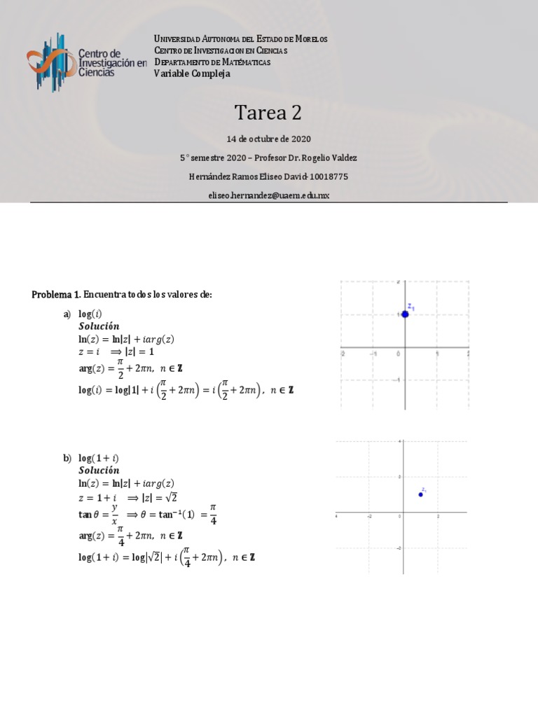 𝑒 𝑧 = 𝑒 𝑥+𝑖𝑦 ⟹ 𝑑𝑜𝑛𝑑𝑒 𝑅𝑒 = 0 𝑦 𝐼𝑚 = 2𝜋𝑛