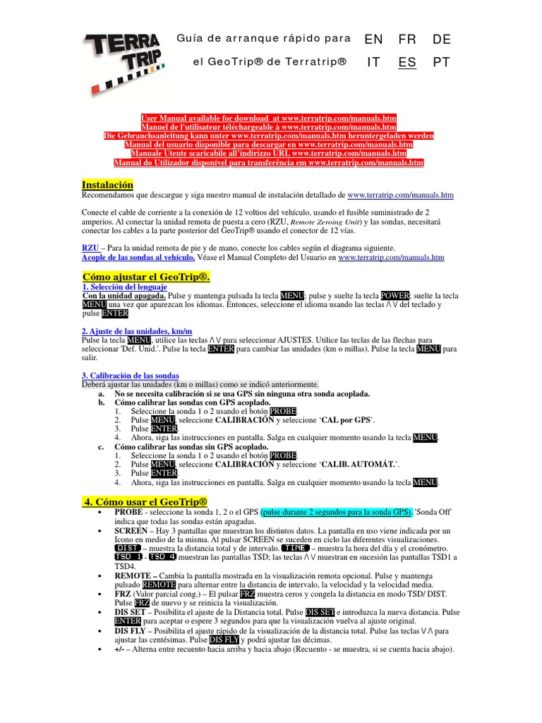 Manual del usuario disponible para descargar en www.terratrip.com/manuals.htm