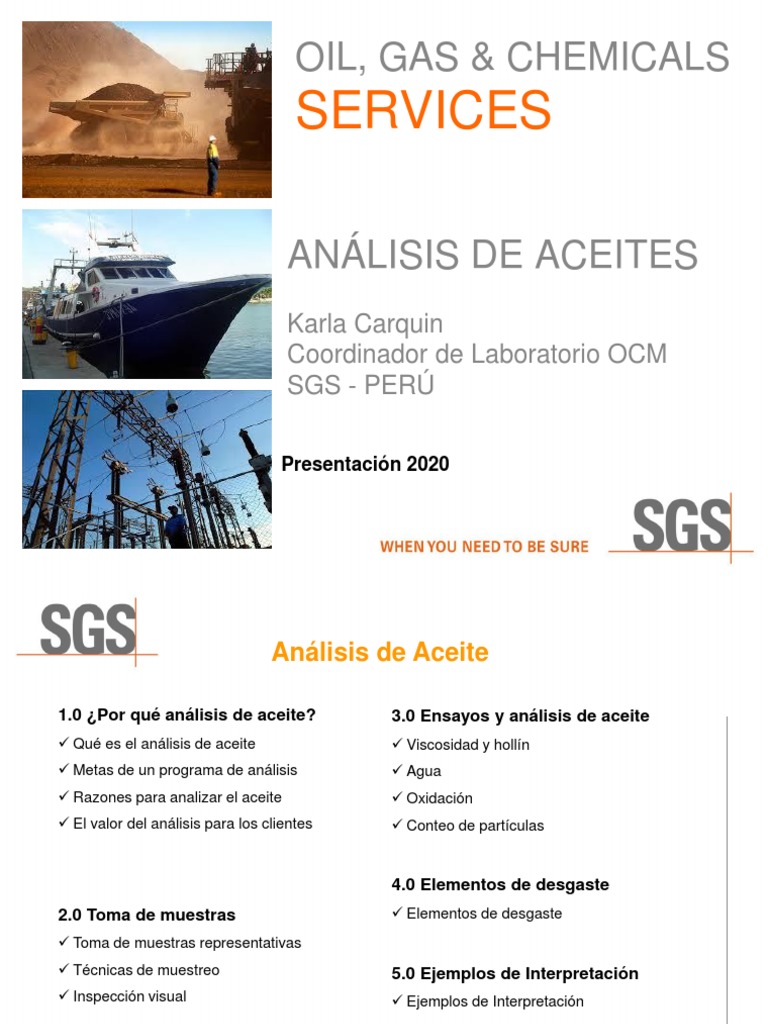 1.0 ¿Por qué análisis de aceite? 3.0 Ensayos y análisis de aceite