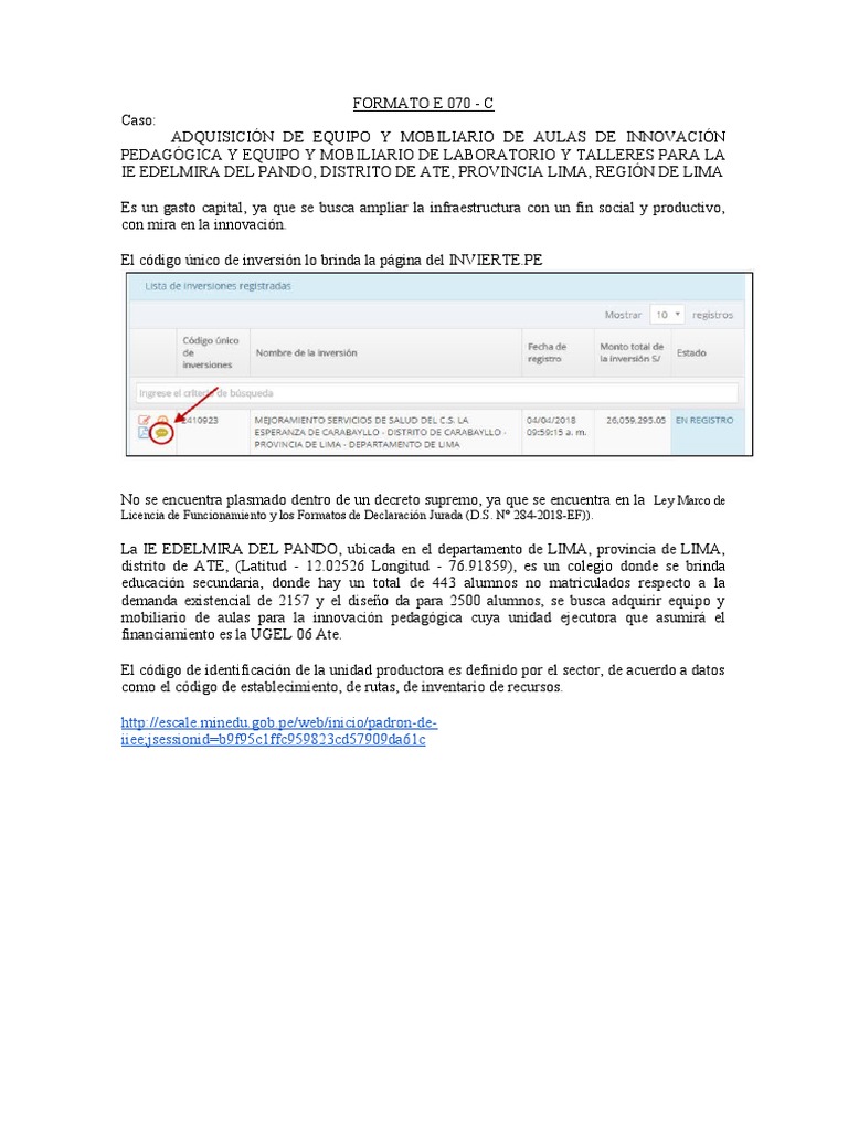 El código único de inversión lo brinda la página del INVIERTE.PE