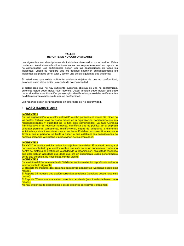 entonces usted debe emitir un reporte de no conformidad.