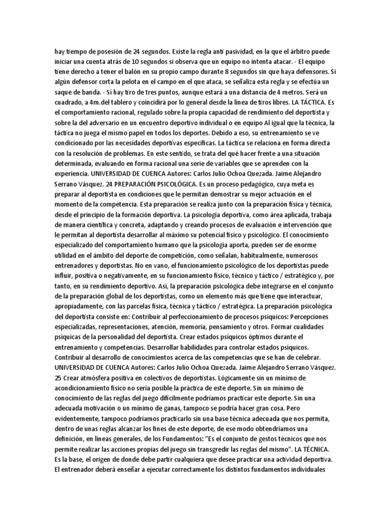 le permitan al deportista desarrollar al máximo su potencial físico y psicológico. El conocimiento