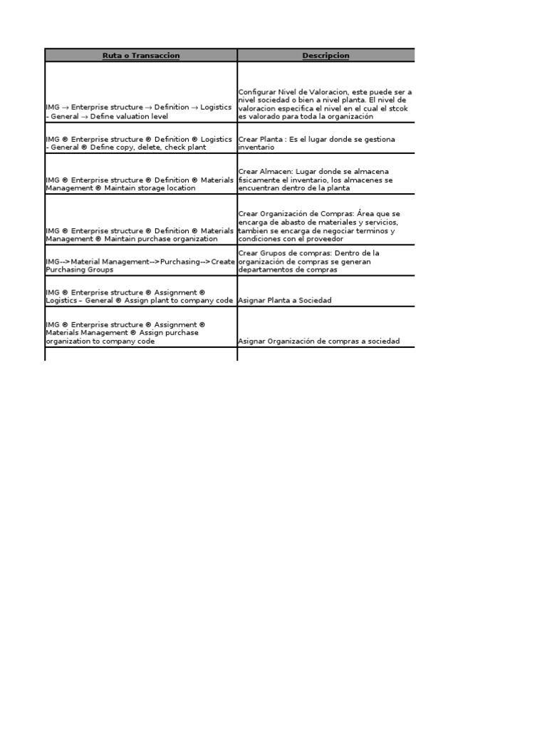 IMG ® Enterprise structure ® Definition ® Logistics Crear Planta : Es el lugar donde se gestiona