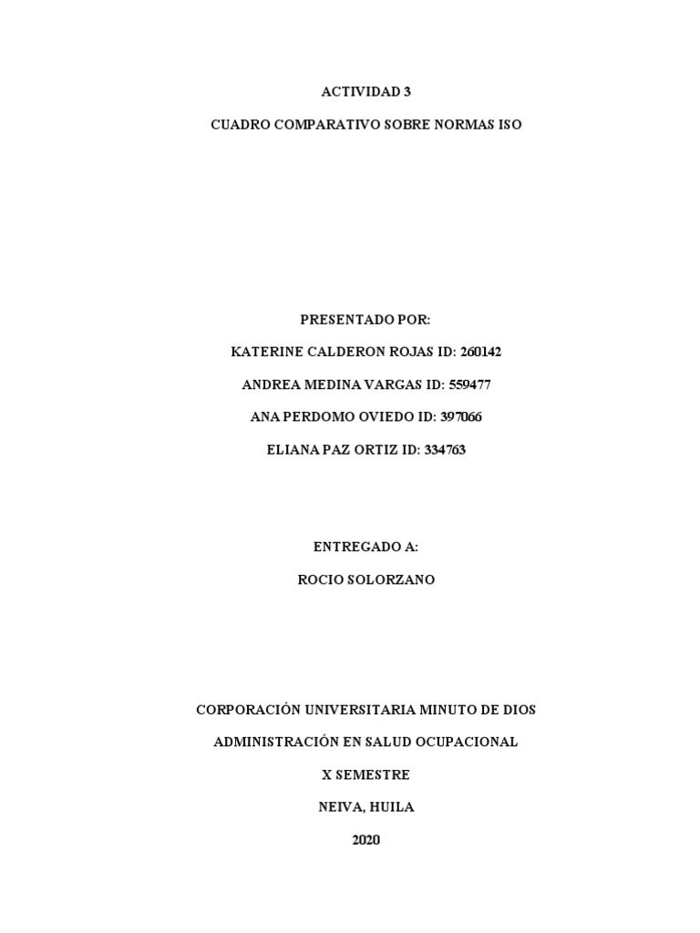 Elaborar un cuadro comparativo de las Normas NTC ISO 9001, NTC ISO 45001, NTC ISO 14001,