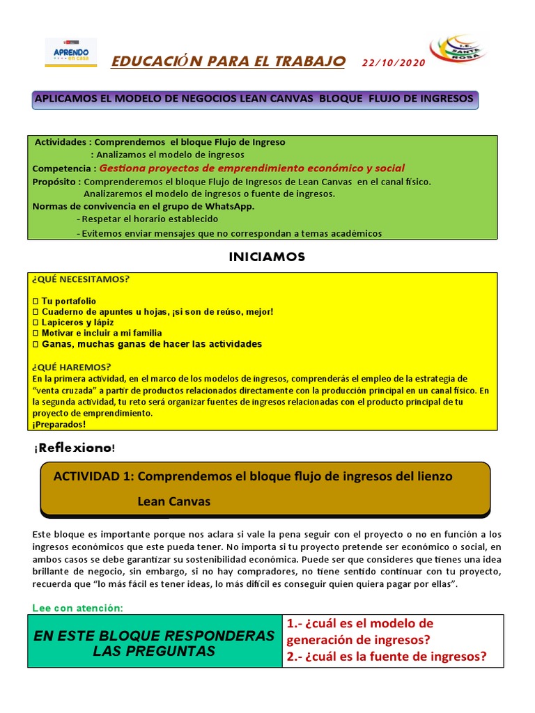 ACTIVIDAD 1: Comprendemos el bloque flujo de ingresos del lienzo