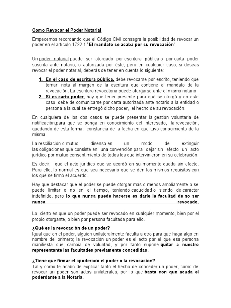 Como Revocar el Poder Notarial