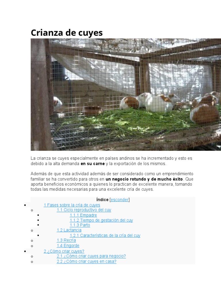 o 2.1 ¿Cómo criar cuyes para negocio?