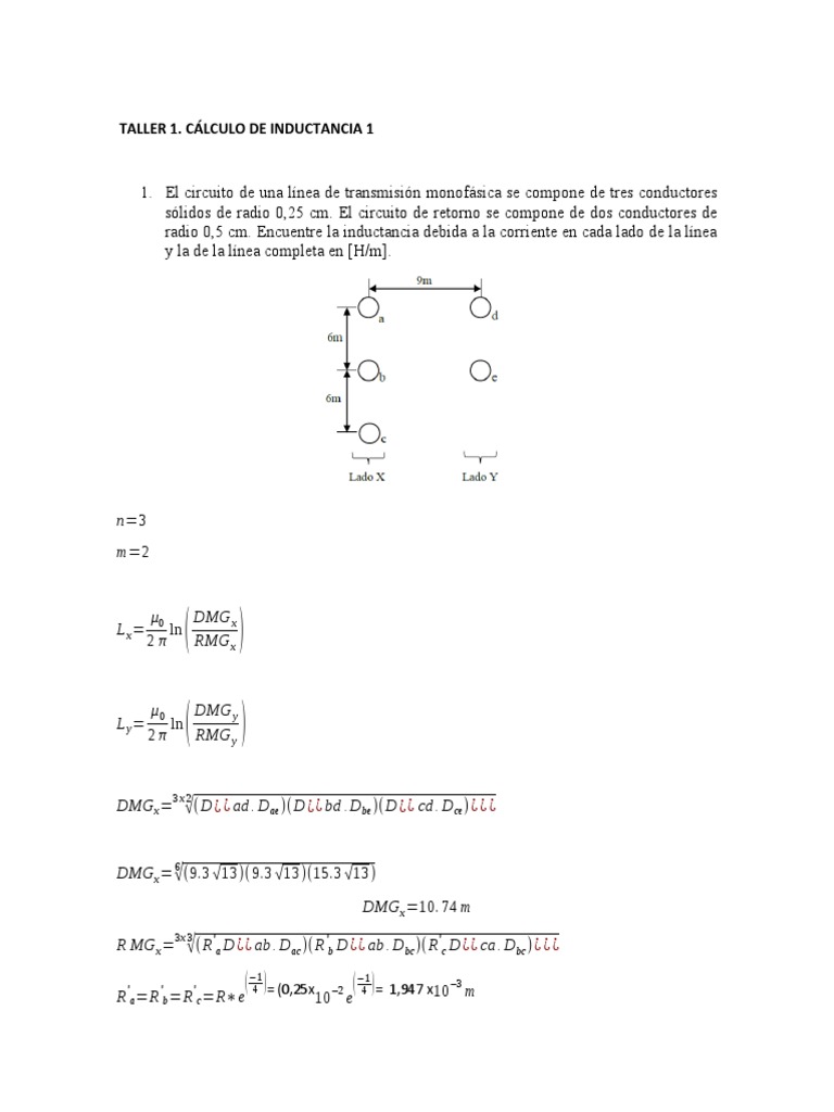 2. Calcular la inductancia de la línea monofásica mostrada en la figura. Los conductores