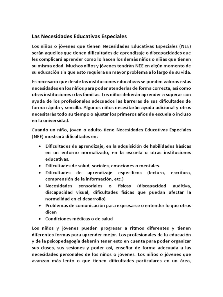 Las Necesidades Educativas Especiales