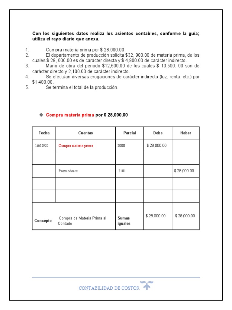 3. Mano de obra del periodo $12,600.00 de los cuales $ 10,500. 00 son de