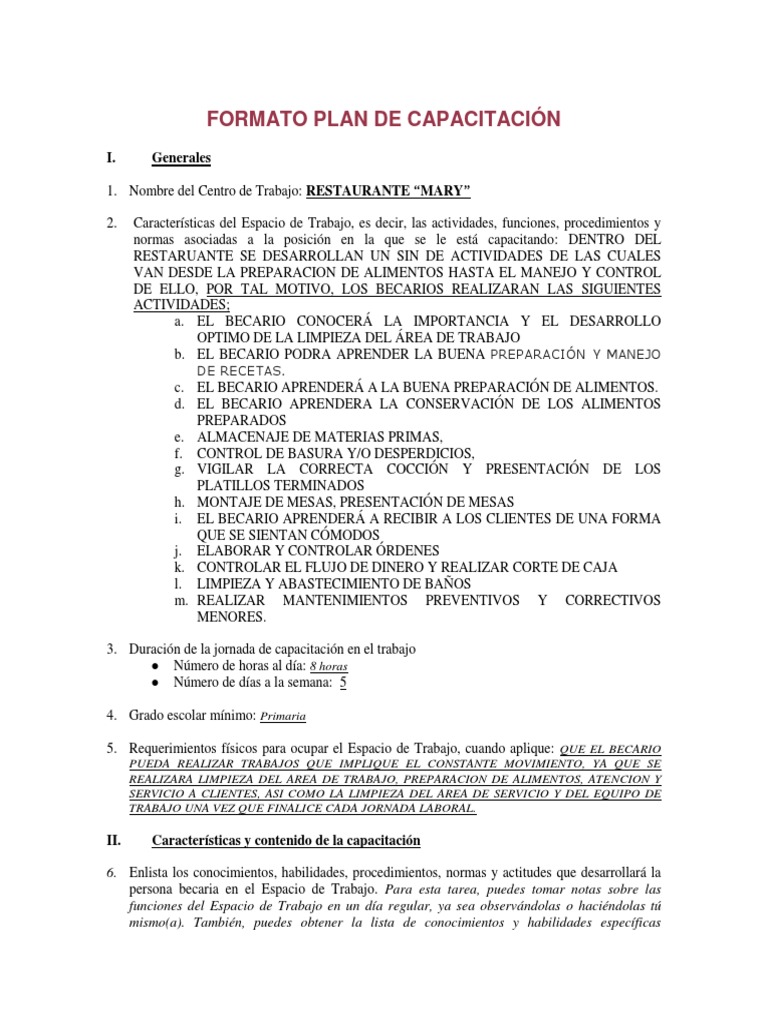 FORMATO PLAN DE CAPACITACIÓN