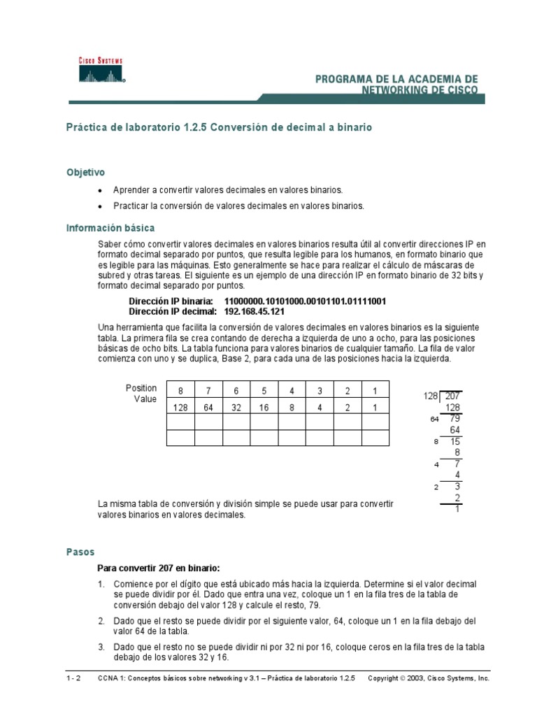 Saber cómo convertir valores decimales en valores binarios resulta útil al convertir direcciones IP en