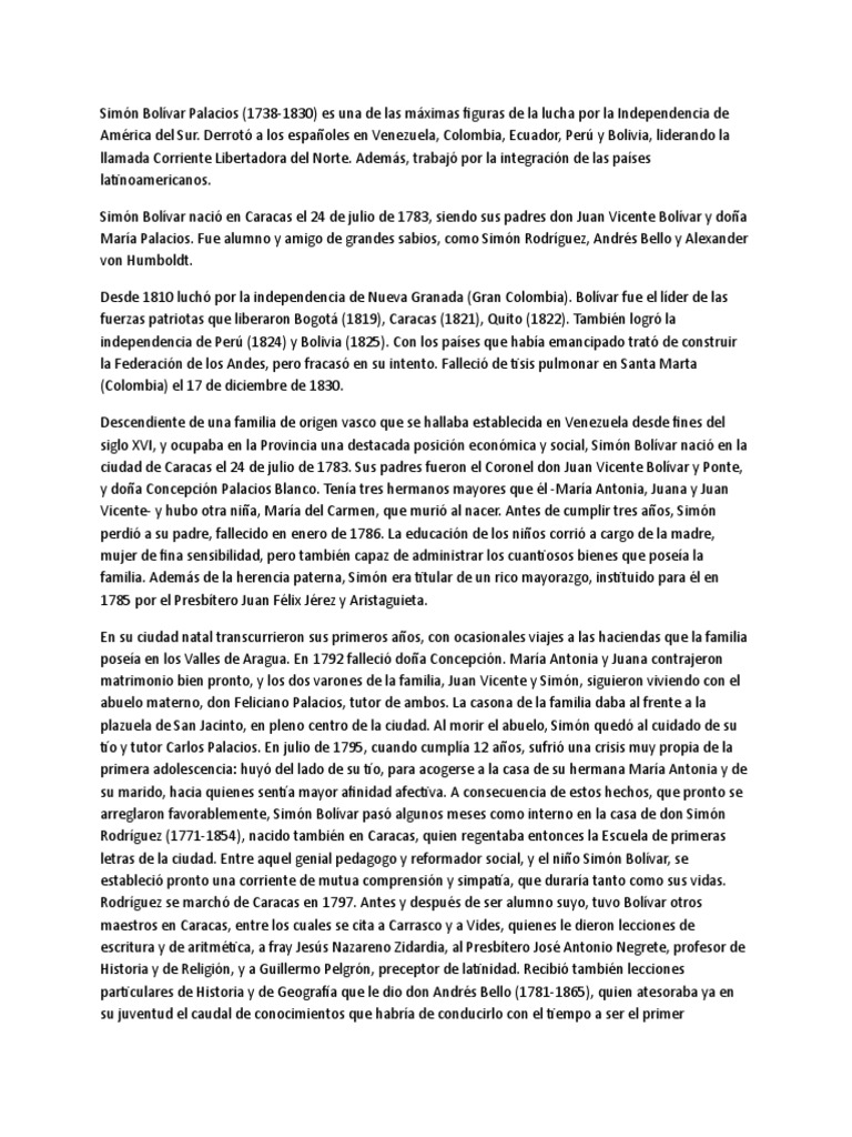 siglo XVI, y ocupaba en la Provincia una destacada posición económica y social, Simón Bolívar nació en la