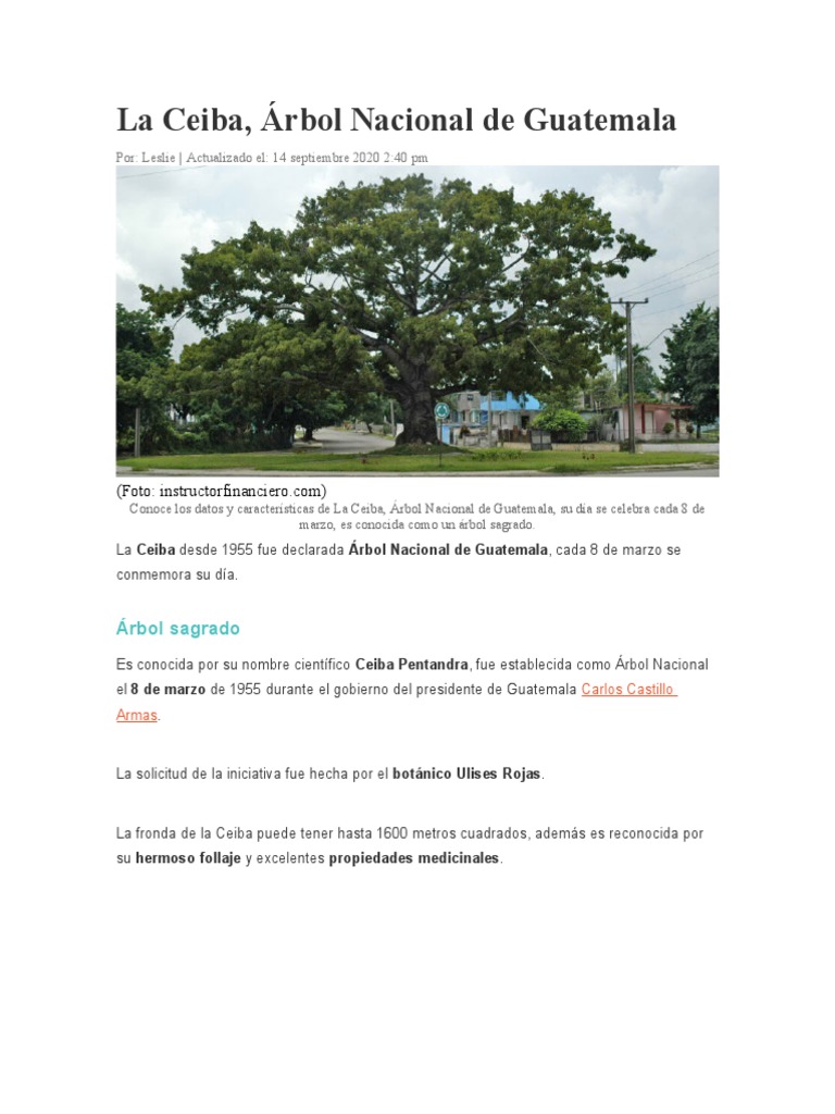 La Ceiba desde 1955 fue declarada Árbol Nacional de Guatemala, cada 8 de marzo se